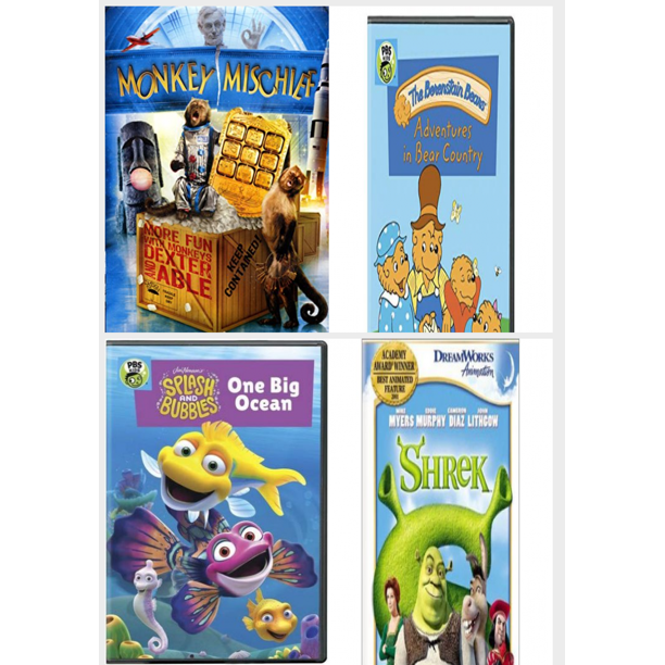 Children S 4 Pack Dvd Bundle Monkey Mischief Berenstain Bears Adventures In Bear Country Splash Bubbles One Big Ocean Shrek Walmart Com